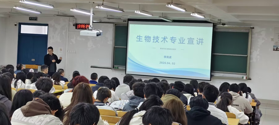 生物技术教研室主任李克虎从一个发人深省的问题——“什么是生物技术?”切入,带领同学们逐步走进生物技术的世界。他从专业认知入手,生动讲解了该领域的前沿动态,并详细介绍了师资力量和系统化的培养方案,激发了同学们对技术转化的浓厚兴趣。